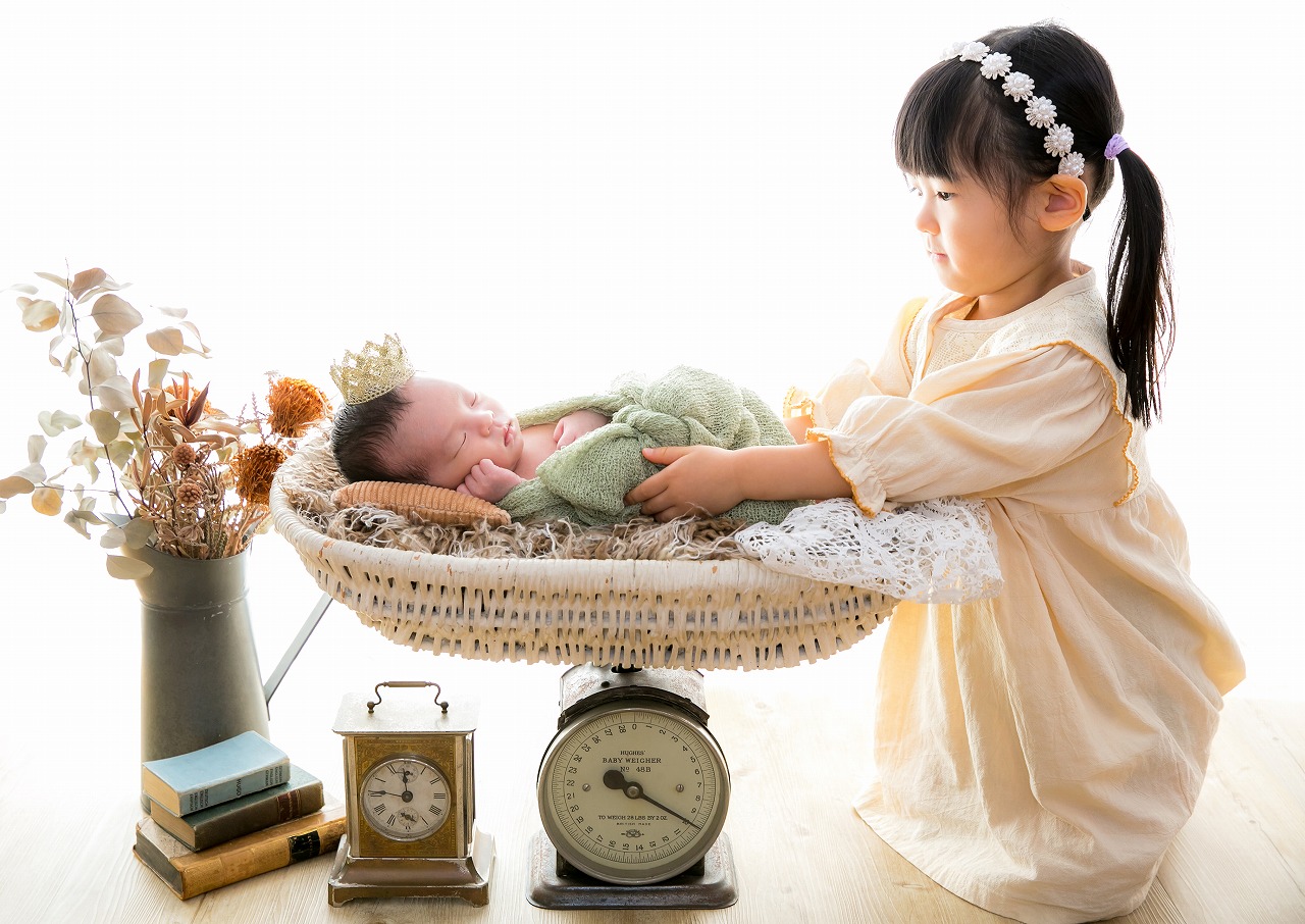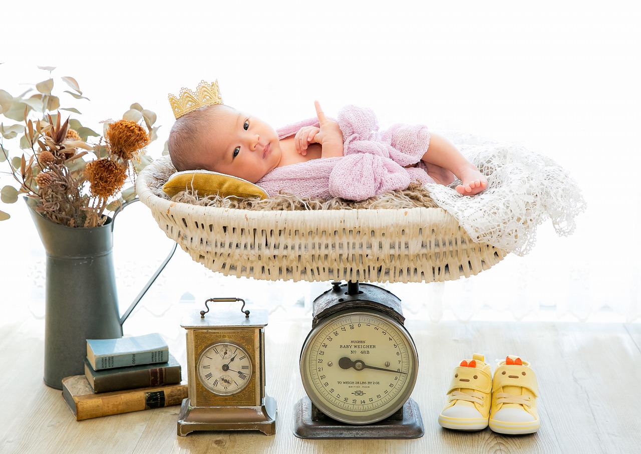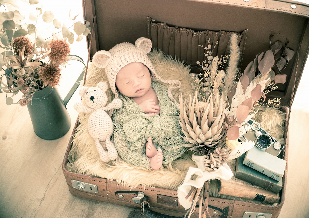 アンティーク小物、やわらかな自然光、オールドレンズによる深みのある描写。今だけの可愛さではなく、10年後、20年後も飾り続けられる一枚を目指しています。成長したお子様が見返したときにも誇らしく思える写真。それが私たちの考える「価値あるニューボーンフォト」です。